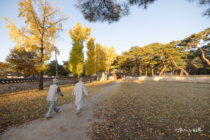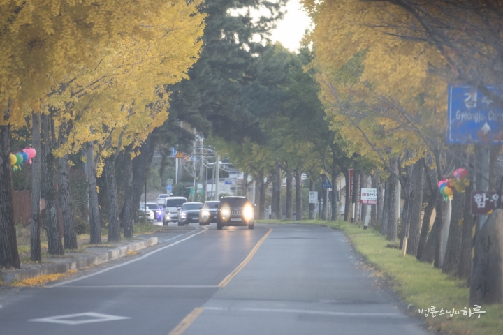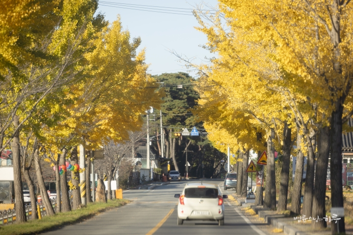 지마 왕릉을 지나 약 40분 만에 포석정에 도착했습니다. 포석정은 온통 노란빛으로 물들어 있었습니다.