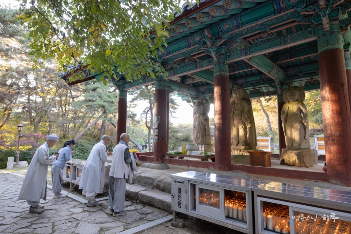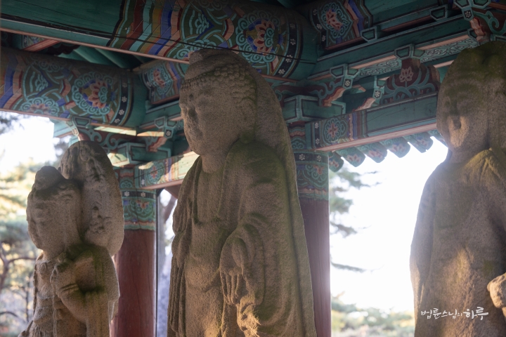 단풍길을 올라 배동 석조여래삼존입상을 참배했습니다. 세 부처님 위로 가을 햇살이 은은하게 내려앉았습니다.