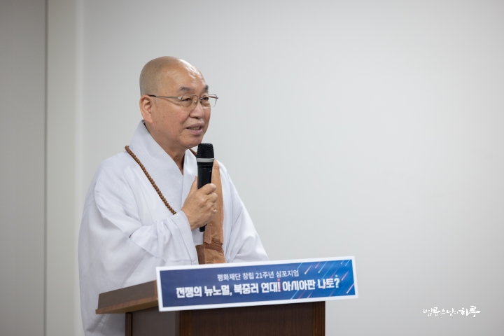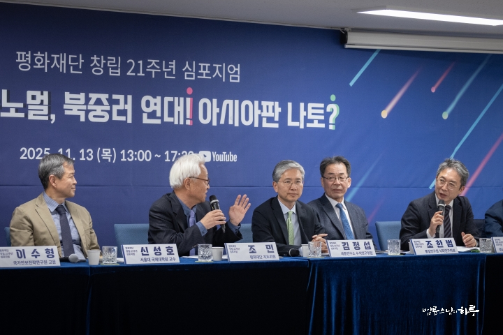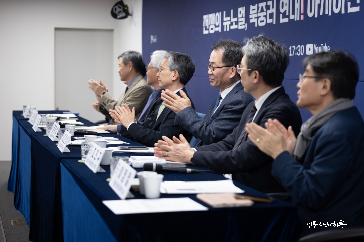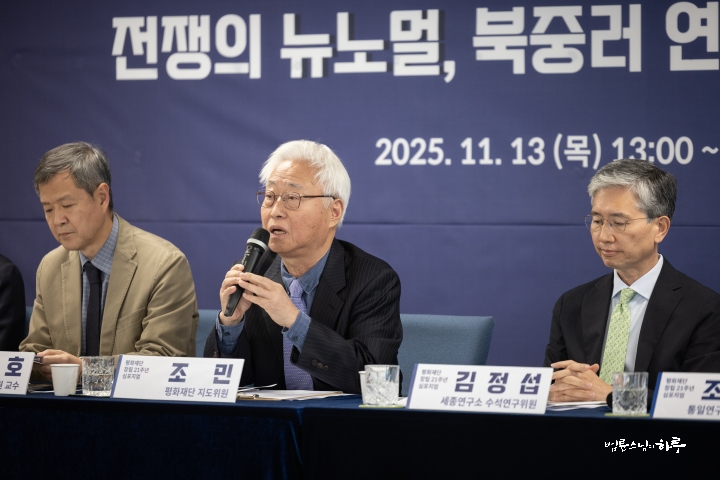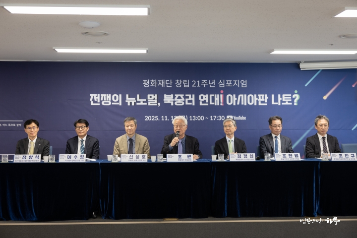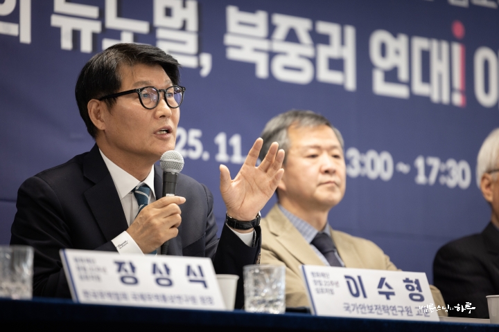 “올해는 전쟁의 뉴노멀 시대입니다. 현재 전 세계에는 여덟 곳에서 전쟁이 벌어지고 있고, 그 가운데 러시아-우크라이나 전쟁은 벌써 4년째 이어지고 있습니다. 특히 작년 10월, 북한의 러시아 파병과 참전으로 인해 한반도에도 먹구름이 드리워진 상황입니다. 이런 엄중한 안보 위기 속에서 한국의 입장과 역할을 어떻게 설정해야 할지 지혜를 모으기 위해 오늘 심포지엄을 개최하게 되었습니다. 전쟁의 뉴노멀 시대에 ‘북·중·러 연대’와 ‘아시아판 나토 창설 가능성?’이라는 두 가지 주제를 두고 발표와 토론을 진행하겠습니다.”