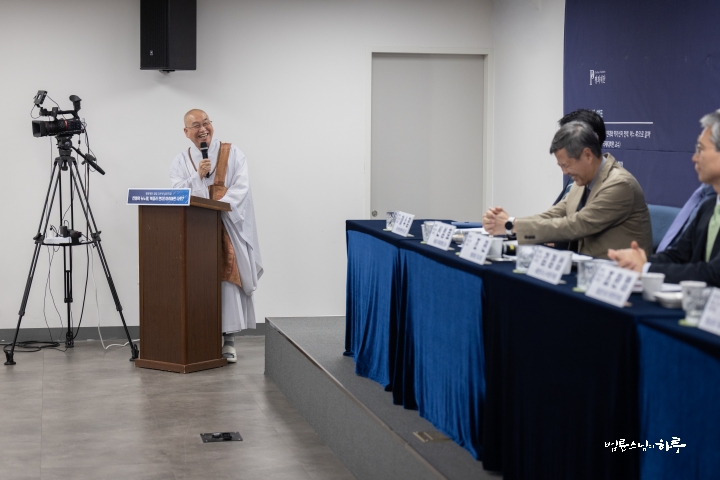 종합 토론을 마치고 전문가들은 마지막으로 스님에게 닫는 말씀을 청했습니다. 스님은 4시간 동안 토론을 경청한 소감을 말하며 밝게 웃었습니다.