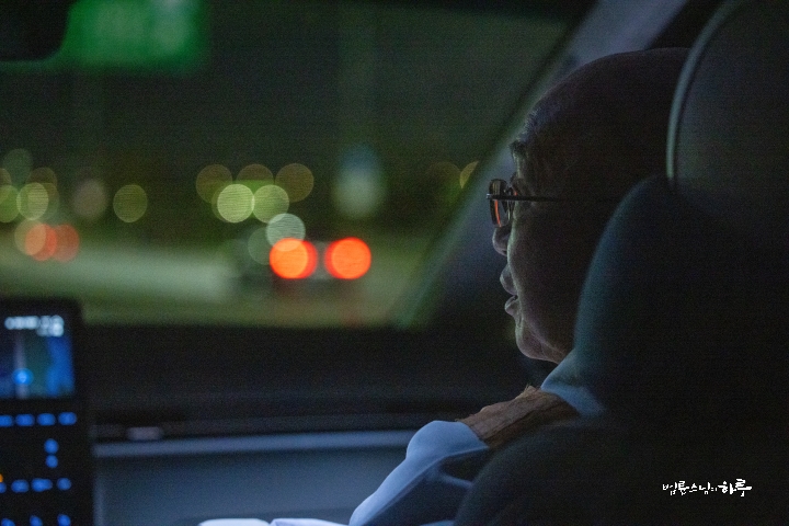 밤 10시가 되어 고양시를 출발한 스님은 차로 1시간을 이동하여 밤 11시에 서울 정토회관에 도착한 후 하루 일과를 마무리하였습니다.