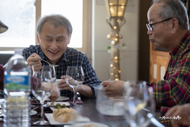 신부님의 요청으로 종교인 모임의 좌장인 박남수 교령님이 식사 기도를 했습니다.