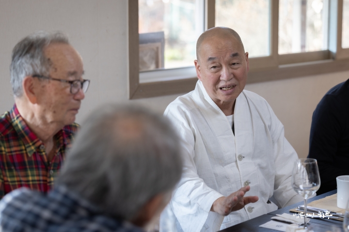 “한울님이 감응하옵시고, 스승님이 감응하옵시고, 조상님이 감응하옵소서. 오늘 오찬 회동은 존경하는 김홍진 신부님의 초청으로 산 좋고 물 좋고 기운 좋은 충북 영동으로 왔습니다. 손수 모든 음식을 준비해 주신 김홍진 신부님에게 감사드립니다. 민족의 화해와 평화를 위한 종교인 모임이 앞으로 더욱더 화목하여 한반도의 평화를 위한 기운을 이곳에서 받아가기를 진심으로 기원합니다.”