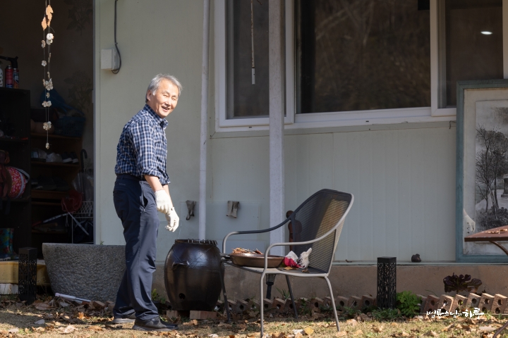 “여기가 원래는 우사였어요. 땅 주인이 저보고 여기서 농사를 한번 지어보겠냐고 해서 한번 답사를 와 봤더니 너무 아늑하고 좋은 겁니다. 그래서 제가 퍼머컬쳐(Permaculture, 영속농업)라는 지속 가능한 농업을 해 보려고 여기서 실험을 해 보고 있는 중이에요. 3년 정도는 땅을 먼저 만들어야 합니다. 그 과정이 좀 힘들지만 일단 땅이 만들어지고 나면 농약을 안 치고도 태평 농법(太平農法)으로 농사를 지을 수가 있어요. 지금은 땅을 만드는 과정이어서 직접 농사지은 것으로 대접을 못 했습니다. 내년부터 수확하게 되면 제가 농사지은 것으로 대접을 하겠습니다. 그리고 여기는 전화가 안 터져요. 그래서 여기가 저에게는 해방구입니다.”