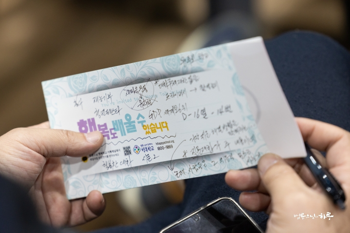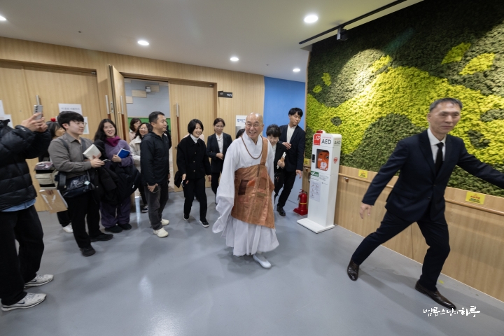 강연을 무사히 마친 봉사자들의 얼굴에는 웃음이 가득했습니다. 스님은 봉사자들에게 감사의 마음을 전한 후 강연장을 나왔습니다.