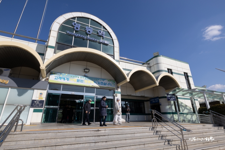 기차 시간이 다가와서 서둘러 영동역으로 향했습니다.