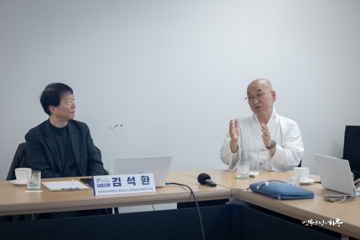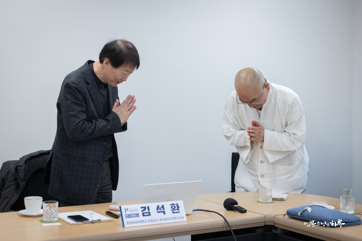 스님은 김석환 교수에게 감사의 마음을 전한 후 곧바로 평화재단 기획위원회 회의에 참석했습니다. 북미 관계 개선에 대한 전망을 모색한 후 갈수록 심해지는 여야의 대립을 어떻게 개선할 수 있을지, 평화재단은 어떤 역할을 할지 이야기를 나눈 후 회의를 마쳤습니다.