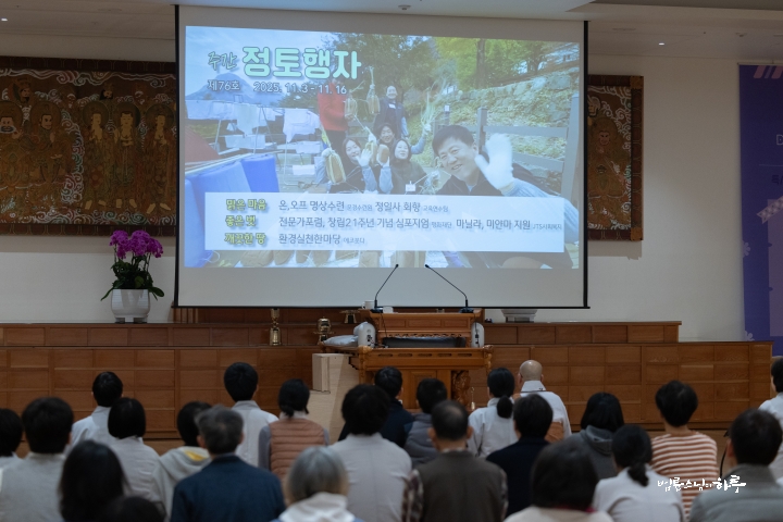“11월도 어느덧 중순을 지나고 있습니다. 갑작스러운 추위로 초겨울이 성큼 다가온 듯합니다. 2025년 한 해를 마무리해야 할 연말이 코앞으로 다가왔고, 정토회는 4주 후면 지난 3년간 이어온 천일결사 기도를 마무리하게 됩니다.