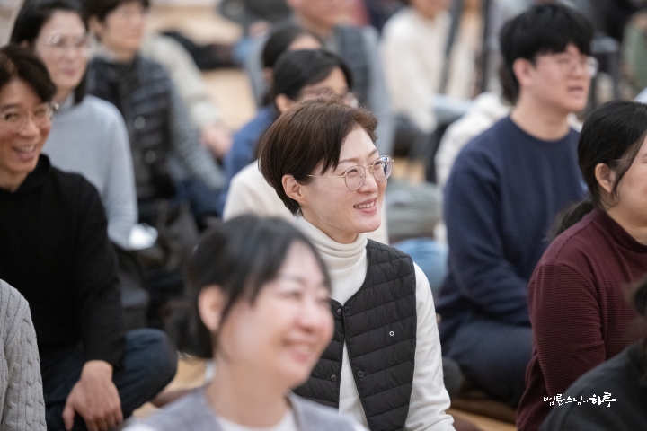 요즘처럼 하루하루가 급박하게 돌아가는 삶 속에서는 뚜렷이 깨어있기가 쉽지 않습니다. 그러나 조금 길게 보고 한 발 떨어져 보면, 이런 변화가 오히려 재미있게 느껴질 수도 있습니다. 사람들은 하와이처럼 사계절이 따뜻하고 시원한 곳을 좋아한다고 합니다. 그런데 정작 하와이에 사는 사람에게 물어보면, 너무 지루하다고 해요. 세월이 가는 줄을 잘 모른다는 거죠. 반대로 사계절의 변화를 겪으며 옷을 챙겨 입고 냉난방을 조절하는 일은 번거로울 수 있지만, 그것이 삶을 더 풍요롭게 만드는 요소가 되기도 합니다. 여러분의 일상이 단지 외부 조건이 고요하기만을 바라서는 안 됩니다. 외부 조건은 자고 일어나면 변하고, 상황은 늘 바뀌기 마련이에요. 그럼에도 내 마음이 고요한 것이 중요합니다. 마음이 고요해지고 싶다고 해서 저절로 고요해지는 것이 아니라, 일상을 삶의 한 과정으로 보는 관점을 가지면, 마음은 저절로 여유로워지고 고요해지는 것입니다.”