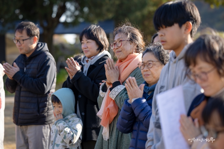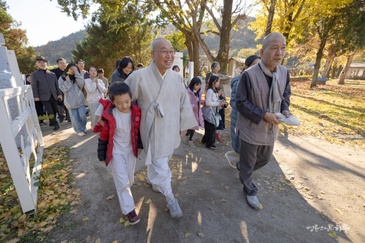 “법륜 할아버지 큰스님께 인사드리고 여러분은 이제 집으로 돌아가겠습니다. 나머지 분들은 좋은 시간 계속 이어 가기를 마음속으로 염원해 주세요.”