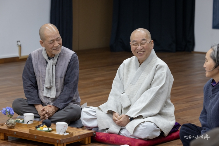 이런 대화를 ‘즉문즉답’이라고 하지 않고 ‘즉문즉설’이라고 부릅니다. 여러분이 말하는 ‘즉문즉답’에서는 ‘만약 스님에게 모르는 질문을 한다면 어떡하나?’ 하는 염려가 있을 수 있습니다. 하지만 우리의 대화는 즉문즉설이기 때문에 그런 걱정을 하지 않아도 됩니다. 모르는 질문이 나오면 ‘그건 모르겠는데, SNS에 검색해 보세요.’라고 하면 됩니다. 검색해서 찾으면 되는 것을 굳이 제게 물을 필요는 없어요. 그러니 어떤 주제를 가지고 대화해도 괜찮습니다. 스님을 걱정해서 ‘이런 질문을 하면 스님이 곤란해하지 않을까?’ 하고 염려하지 말고, 마음 편하게 질문하면 됩니다.”