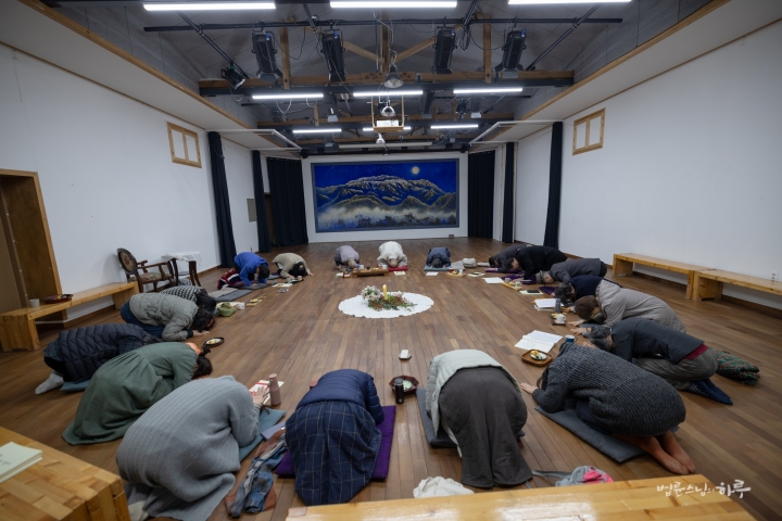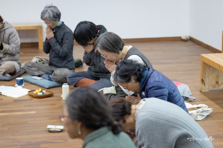 목사님이 중심이 되어 기독교 사상을 공부하는 사람들이지만 스님에게 삼배를 하고 반야심경을 독송을 했습니다. 오늘 모임을 갖기 50일 전부터는 법륜스님의 금강경 강의 책도 함께 읽고 공부하는 시간을 가졌다고 합니다.
