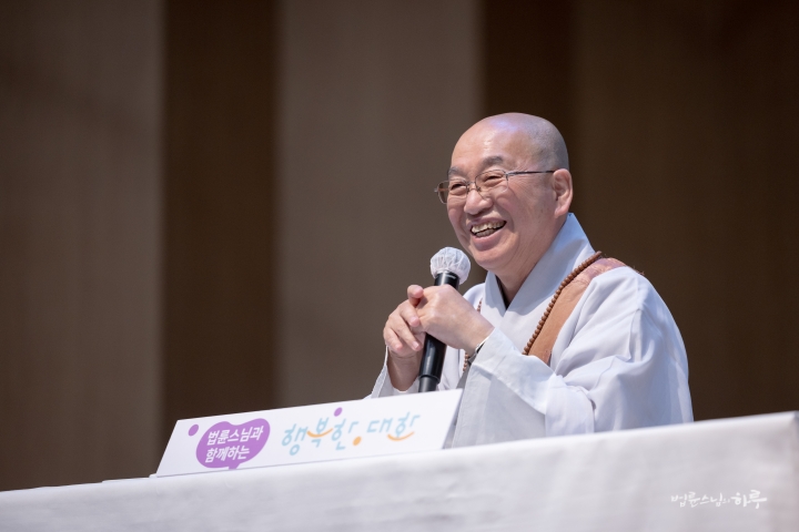 저는 종종 ‘제가 잘 사는 것이 대한민국 사람들에게 희망입니다.’라고 말합니다. 저는 고등학교도 중간에 그만둔 사람이고, 시골에서 자라 외국 유학의 ‘유’자도 몰랐습니다. 그런데도 지금 이렇게 잘살고 있지 않습니까? 그런데 학교도 나보다 더 다니고, 더 젊고, 재산도 더 많은 여러분이 왜 못 살겠습니까? 제가 웃으며 잘 살고 있는 모습 자체가 ‘법륜스님도 저렇게 사는데, 우리도 충분히 잘 살 수 있다.’ 하는 메시지가 되는 겁니다. 그러니 여러분도 마음속에 남아 있는 작은 걱정들을 내려놓고, 조금 더 편안하게 사셨으면 좋겠습니다.”