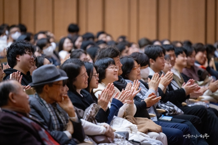 인간관계를 편안하게, 자연스럽게 갖는 게 필요합니다. 강아지나 고양이를 키울 때를 생각해 보세요. 강아지나 고양이를 키운다고 해서 큰 도움이 되는 것은 아니지만, 오히려 내가 밥을 주면서 강아지나 고양이를 좋아하고 지내잖아요. 강아지나 고양이의 좋은 점은 사람처럼 잔소리를 하지 않는다는 겁니다. 잔소리는 설령 득이 되어도 듣기 힘듭니다. 부부간에도, 부모 자식 간에도 잔소리를 줄여야 합니다. 너무 간섭하지 말고 적당한 선에서 관계를 맺고 살아간다면 갈등 없이 충분히 잘 살 수 있습니다. 그렇게 여러분 모두 나날이 행복하게 사시길 바랍니다.”