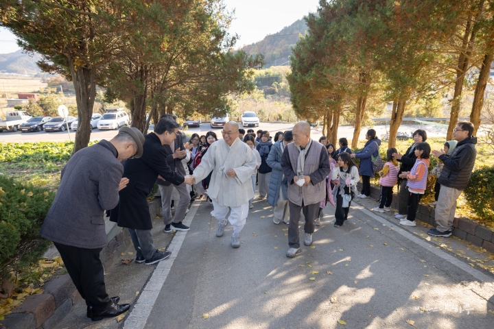 오늘 이곳을 둘러보며 여러분의 시도가 매우 참신하다는 생각이 들었습니다. 동시에 제 자신에 대한 작은 반성도 하게 되었습니다. 정토회의 규모가 커지고 제가 바빠지면서 대중과 함께 어울려 지내는 시간이 점점 줄어들었기 때문입니다. 공동체가 처음 만들어질 때만 해도 하루 종일 함께 일하고, 함께 먹고 자고, 함께 산행도 하며 지냈습니다. 하지만 규모가 커지면서 지금은 형식적으로 1년에 몇 번 결합하는 정도에 그치고 있습니다. 오늘 여러분의 삶을 보며, 저도 대중과 더 가까이 지내야겠다는 마음이 다시 들었습니다. 고맙습니다.”