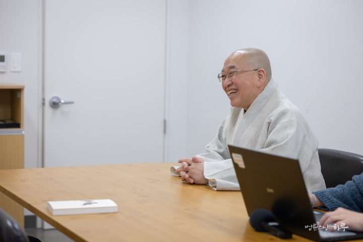 “제 이름은 법륜(法輪)입니다. ‘법(法)의 수레바퀴를 굴려라’ 하는 뜻으로 스승님께서 지어 주신 이름이지요. 그래서 여기까지 굴러 왔습니다. 만나 뵙게 되어 반갑습니다. (웃음)