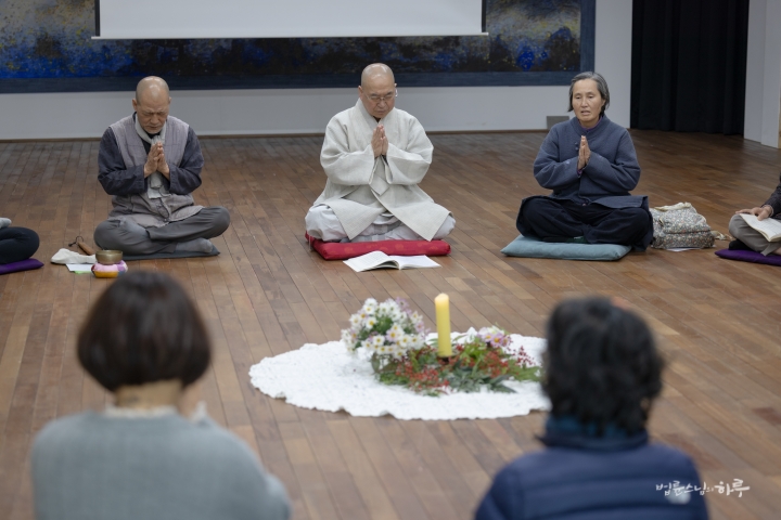 목사님은 작년 제주 항공 여객기 참사로 아들을 잃은데 이어 얼마 전 남편과도 사별한 '사랑 어린 배움터'의 한 가족을 언급하며 스님에게 위로의 말을 청했습니다. 스님은 어떤 마음을 가져야 슬픔을 극복할 수 있는지 이야기한 후 대화를 시작했습니다.