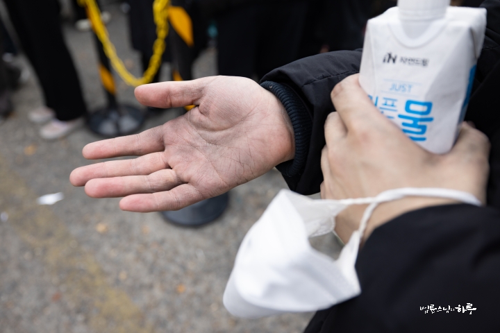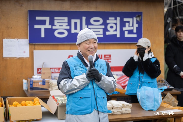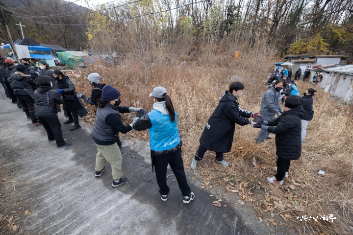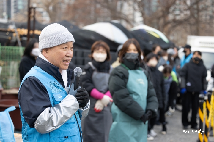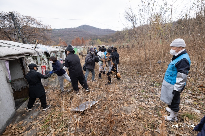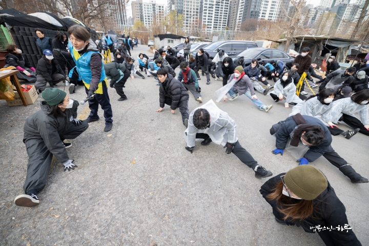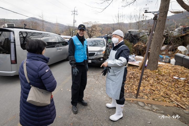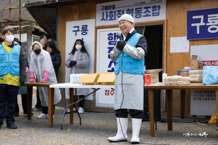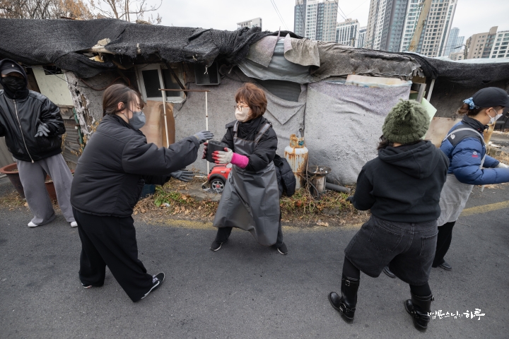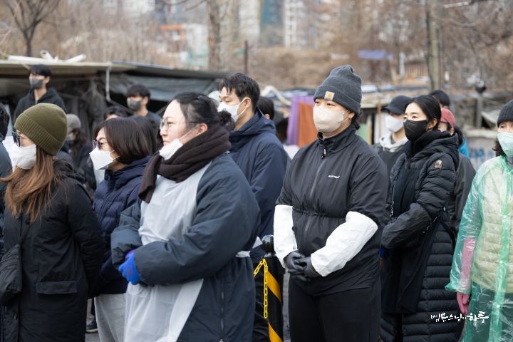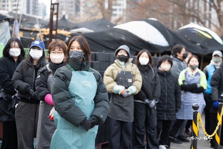 “일을 안 하고 인사만 하러 왔습니다. 제가 봉사를 시작한 지 23년이 되었는데 이번에 처음 빠진 겁니다. 그래서 기분이 되게 이상했습니다. 솔직히 좀 좋을 줄 알았는데 며칠 전부터 자꾸 허전하고, ‘이제 계속 못 가게 되면 어떡하지?’ 이런 생각도 들었습니다. 그리고 이렇게 같이 일하는 재미가 있는데, 그 재미를 못 느낀 게 조금 서운하기도 했습니다. 흐린 날씨를 보면서 걱정도 했어요. 집안에서 바깥을 보니까 해가 없어서 너무 추워 보이는 거예요. 그래서 ‘엄청 춥겠다. 어떻게 하지?’ 이런 걱정도 했었는데, 덜 추웠다고 해서 다행입니다. 이렇게라도 얼굴 볼 수 있어서 정말 고맙습니다.”
