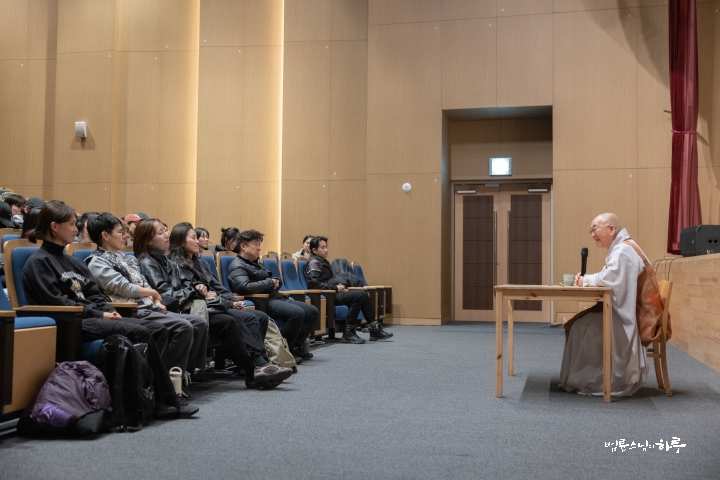 따뜻한 온기에 몸을 녹이며 맛있게 식사를 하고 대강당에 모두가 다시 모였습니다. 오후 5시 30분부터는 스님과 함께 인생 고민에 대해 묻고 대화하는 시간을 가졌습니다.