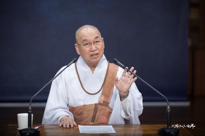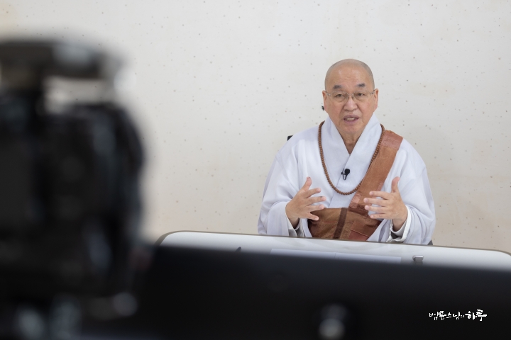 오전 10시부터는 정토회관 방송실에서 정토경전대학 학생들과 그동안 수업을 들으며 궁금한 점에 대해 대화하는 온라인 즉문즉설 시간을 가졌습니다.
