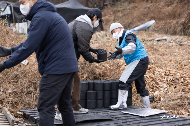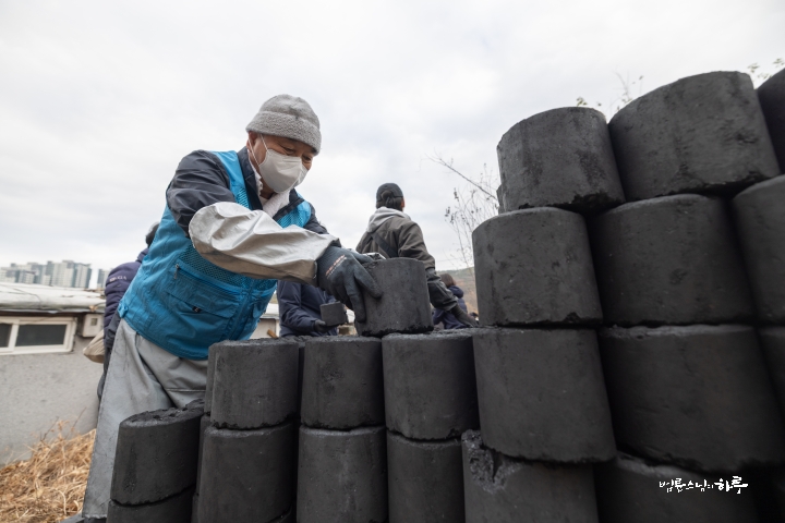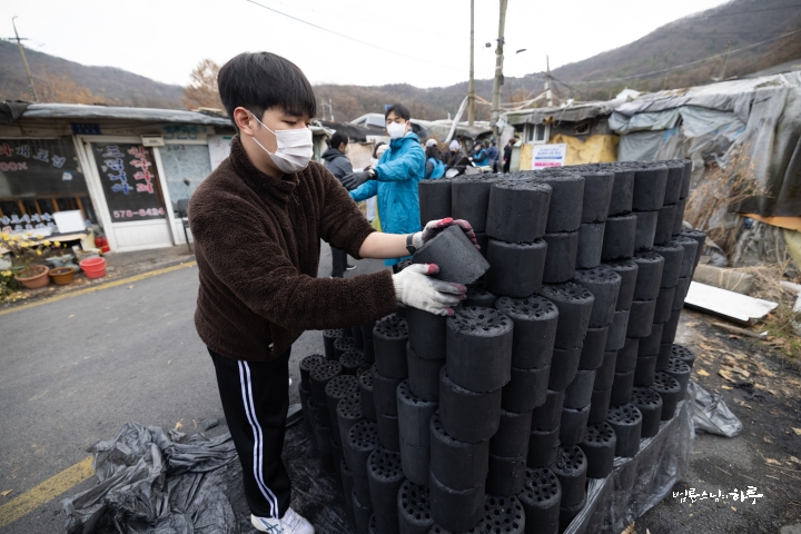 “스님, 가급적 연탄을 높게 쌓아 올려 주세요. 옆에 다른 공간이 좀 있어야 다른 물건들도 쌓을 수 있거든요.”