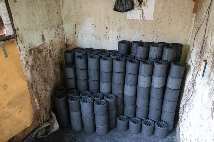 이번에는 집과 비교적 가까운 야외에 연탄을 쌓아 올렸습니다. 여기에는 여러 가구가 연탄을 공동으로 사용하기 때문에 600장을 쌓기로 했습니다.