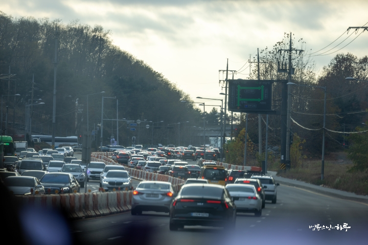 곧바로 짐을 챙겨 서울을 출발해 두북수련원으로 향했습니다. 저녁 7시에 출발한 차는 고속도로 위를 3시간 30분 동안 달려 밤 10시 30분에 두북수련원에 도착했습니다.