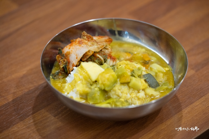 정토사회문화회관 지하 1층 식당에는 JTS 봉사자들이 정성껏 준비한 카레와 김치가 차려져 있었습니다.