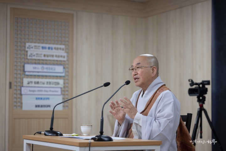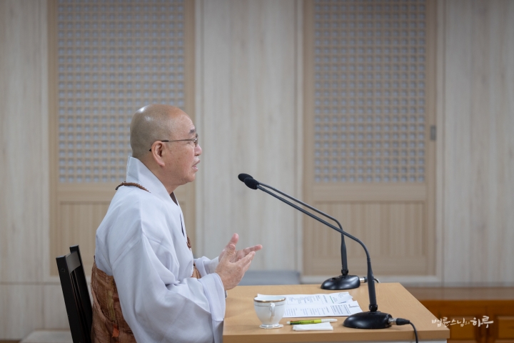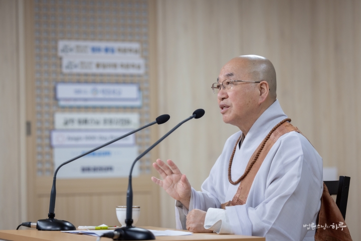 “오늘은 법사단 연수 교육의 날입니다. 법사단 단장님의 말씀에 따르면, 정토회 안에서 법사의 역할에 대해 약간의 어려움도 있고, 정확하게 이해되지 않는 부분도 있다고 합니다. 어떤 일에 적극적으로 관여하면 ‘간섭한다’는 말이 나오고, 한발 물러서 지켜보면 ‘무관심하다’는 이야기가 나온다고 해요. 이런 상황에서 어떻게 균형을 잡을 것인지가 오늘 연수 프로그램의 주제라고 들었습니다.