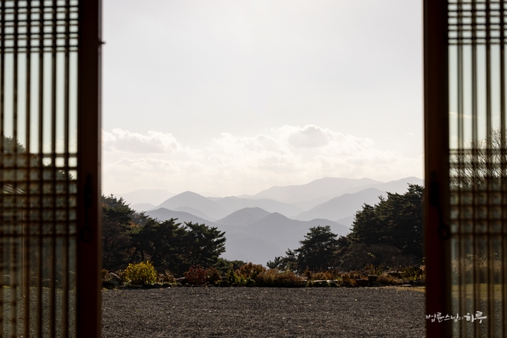 선당에 앉아서 밖을 바라보자 그림 같은 풍경이 펼쳐졌습니다. 스님이 웃으며 말했습니다.
