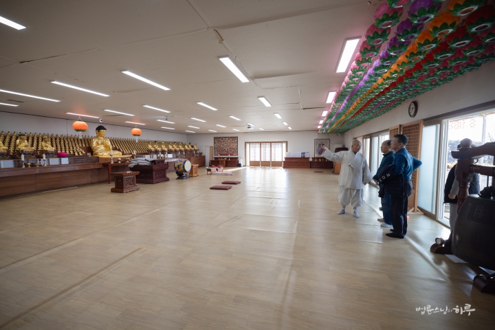 이어서 가건물로 지어 놓은 대웅전을 참배했습니다. 삼배를 한 후 다시 스님이 설명을 이었습니다.