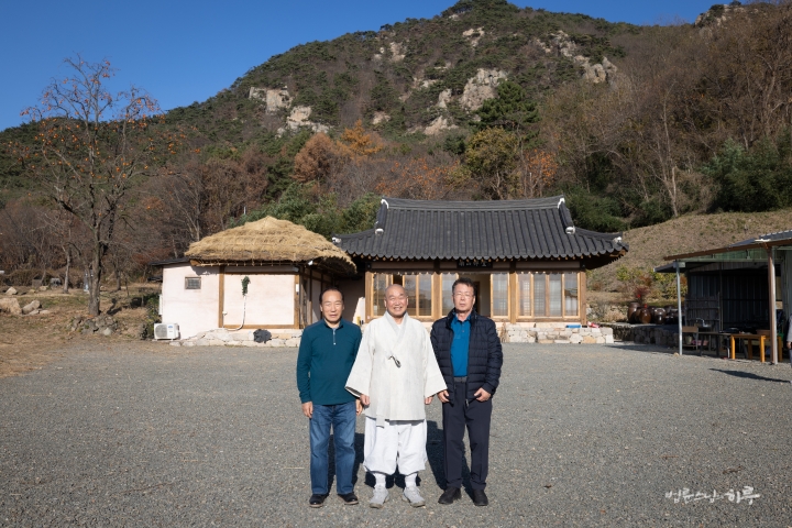 한 시간 동안 울력을 하고 나니 미국 LA정토회 회원인 이경택 님과 이승훈 님이 부산 해운대 법당을 둘러보고 두북수련원을 찾아왔습니다. 두 분은 LA정토회가 오늘에 이르기까지 초창기부터 기틀을 마련해 준 분들로, 오랜만에 한국을 방문하여 정토회 으뜸절을 순례하고 있었습니다. 스님은 함께 점심 식사를 한 후 천룡사가 있는 경주 남산으로 향했습니다.
