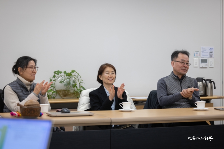 내일은 오전에 사상계 잡지와 대담을 나눈 뒤, 대화 문화 아카데미 60주년 기념행사에서 ‘기후 위기와 생명애(生命愛)의 길’을 주제로 대화를 나눌 예정입니다. 오후에는 평화재단으로 돌아와 손님들과 미팅을 하고, 저녁에는 춘천에서 올해 마지막 행복한 대화 즉문즉설 강연을 진행할 계획입니다.