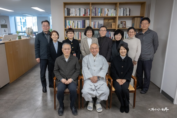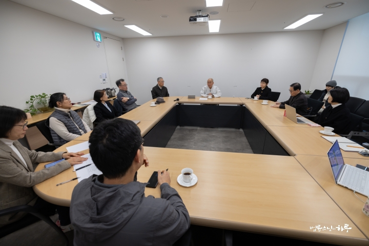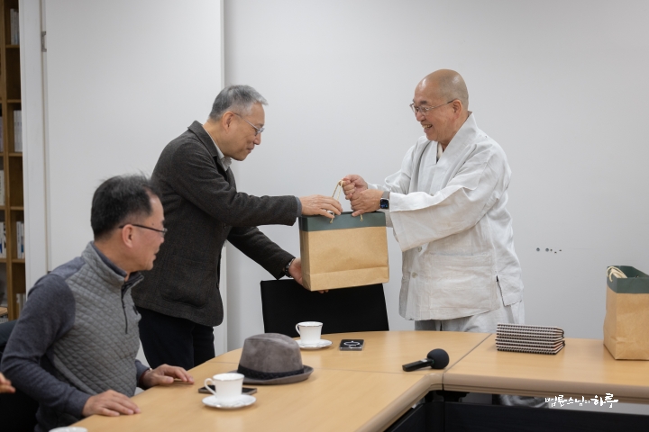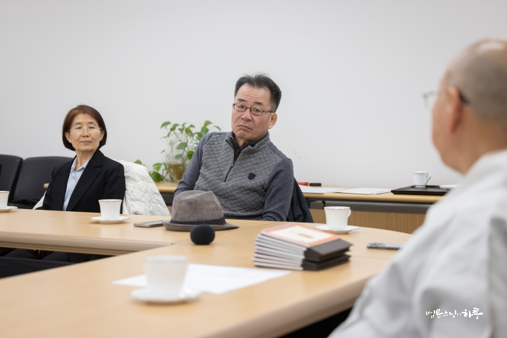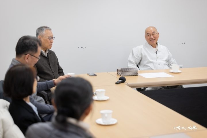 스님은 바쁜 시간을 내어 준 이사진에게 감사의 마음을 전한 후 전법회원 법회를 하기 위해 정토회관 방송실로 향했습니다.