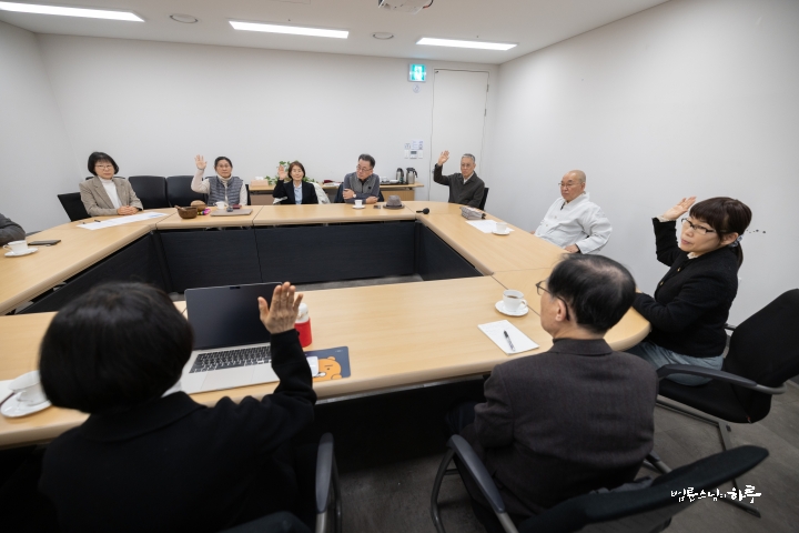 스님의 말씀을 끝으로 큰 박수와 함께 평화재단 임시 이사회를 마쳤습니다.