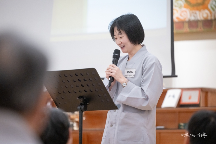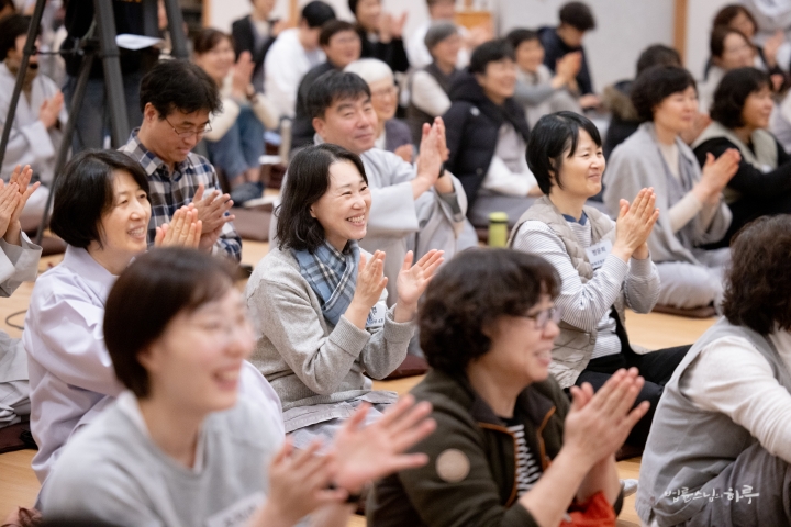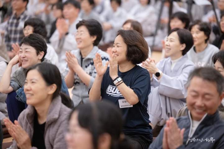 역경을 수행을 통해 극복해 낸 감동적인 이야기에 모두가 눈시울을 붉히며 큰 박수를 보냈습니다.