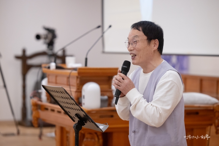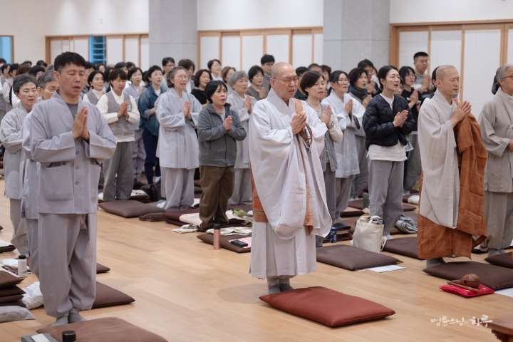 “우리는 3년 전, 천일 동안 하루도 빠지지 않고 매일 정진하자는 원을 세우고 천일결사를 시작했습니다. 그리고 이제, 어느덧 그 천일이 다 되어가고 있습니다. 다음 주면 천일결사 회향식이 열립니다. 그래서 이번 1박 2일 수련은, 지난 3년의 정진을 마무리하는 의미로 마련된 자리입니다.