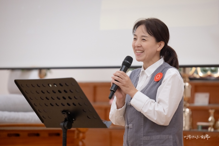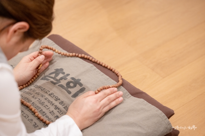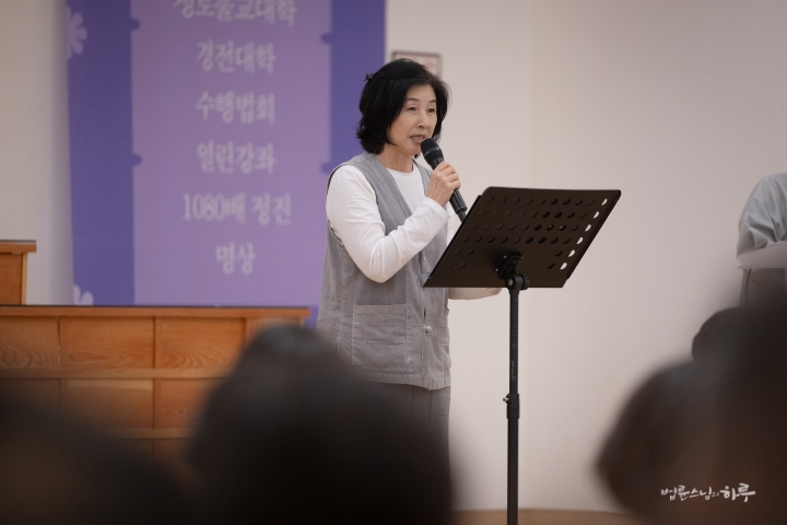 “수행정진을 하지 않았다면 미워하고 원망하며 괴로웠을 텐데, 스승님의 가르침 덕분에 여기까지 왔습니다. 큰일처럼 보이던 모든 일이 ‘별일 아니다’라는 말씀을 듣는 순간, 제 마음에 '고맙습니다'가 피어올랐습니다. 나를 괴롭히는 인연은 없고, 모든 것이 내 문제임을 알게 되었습니다. 나는 내가 좋습니다. 나는 할 수 있습니다. 이것이 나의 기도입니다. 수행은 언제나 나를 돕고, 그렇게 제 삶은 조금씩 제자리를 찾아가고 있습니다...”