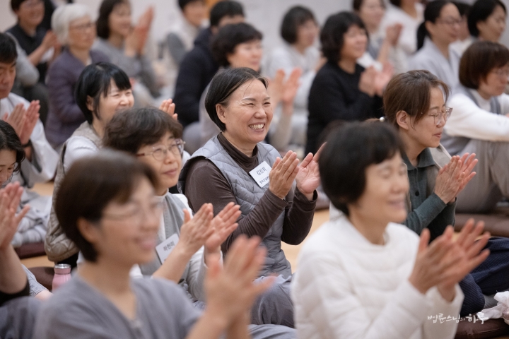 큰 박수와 함께 회향 수련 1일째 프로그램을 모두 마쳤습니다.