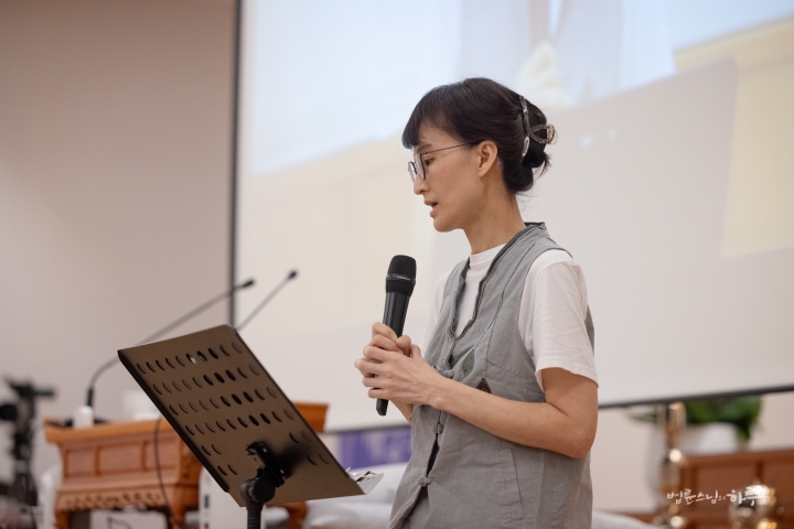 “내가 당한 상처와 분노가 너무 억울했지만, 수행을 통해 ‘나 자신은 내가 지키겠다’고 처음으로 결심했습니다. 아버지에 대한 분노가 사라지자, 세상 어떤 갈등도 하루 이틀을 넘기지 않고 녹아내리기 시작했습니다. 내 문제가 하나씩 해결될수록 스님의 가르침이 모두 진리라는 확신이 깊어졌습니다. 이제는 어떤 사람을 보아도 ‘그럴 수도 있겠다’며 이해가 먼저 올라옵니다. 스님처럼 바른 길을 한 발 한 발 걷겠다고 다시 다짐합니다.”