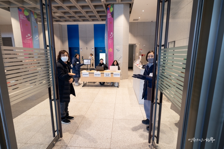 스님은 새벽 수행과 명상을 마친 후 회향 수련을 하기 위해 정토사회문화회관으로 향했습니다. 회향 수련은 전국의 으뜸절과 실천장소에서 동시에 진행되었습니다. 서울 정토사회문화회관과 정토회관에서는 서울제주, 강원경기동부, 인천경기서부, 청년특별지부, 행복운동특별본부, 공동체 지부에서 총 570명의 대중이 참석했습니다. 아침 일찍부터 1박 2일 수련에 참석하기 위해 정토회원들이 침낭을 들고 회관으로 하나둘 모여들었습니다.