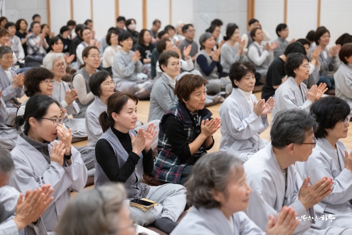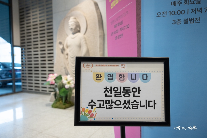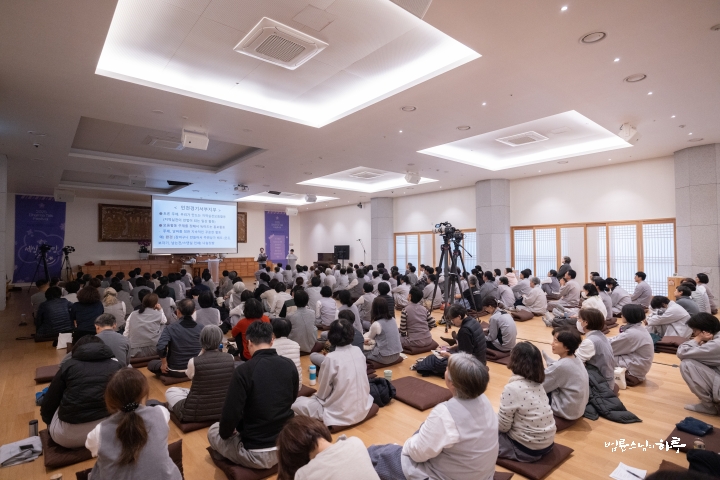 사실 정토회가 걸어온 지난 수십 년을 돌아보면 늘 쉽지 않았습니다. 시대적으로, 환경적으로 많은 어려움이 있었습니다. 그러나 그 순간순간 힘들었던 과정들이 지금의 정토회를 있게 했고, 우리 공동체가 여기까지 올 수 있게 했습니다. 그래서 지난 3년의 천일결사도 그 성과가 숫자나 건물로 남아 있는 것이 아니라, 여러분 각자의 경험과 삶 속에 남아 있는 것입니다. 그것이야말로 진짜 자산이며, 앞으로 나아갈 힘의 밑거름입니다. 이제 그 경험을 밑천 삼아 다음 천일을 향해 나아갑시다. 수고 많으셨습니다.”