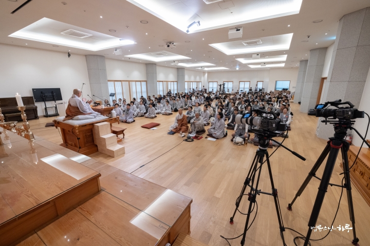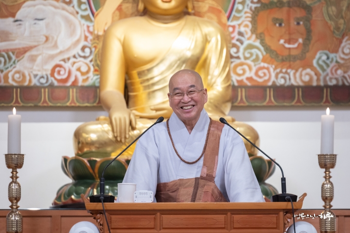 “우리는 정진을 시작하면서 ‘불편을 좀 감수하자!’, ‘어려움을 한 번 이겨 보자!’ 하는 마음으로 함께 출발했습니다. 중요한 것은 불편함을 겪어 보는 경험입니다. 그런 경험이 몇 번 쌓이면, 나중에 힘든 일이 닥쳤을 때 ‘예전에도 해 봤으니 괜찮다.’ 하는 자신감이 생깁니다. 그 자신감, 그 여유가 바로 수행입니다.
