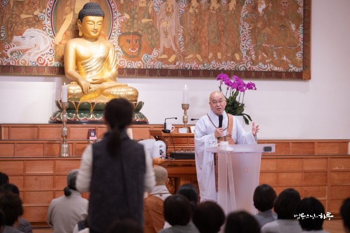 “감사합니다. 오늘 질문하길 잘한 것 같습니다. 스님의 말씀 마음 깊이 새기고 정진 잘하는 수행자가 되겠습니다.”