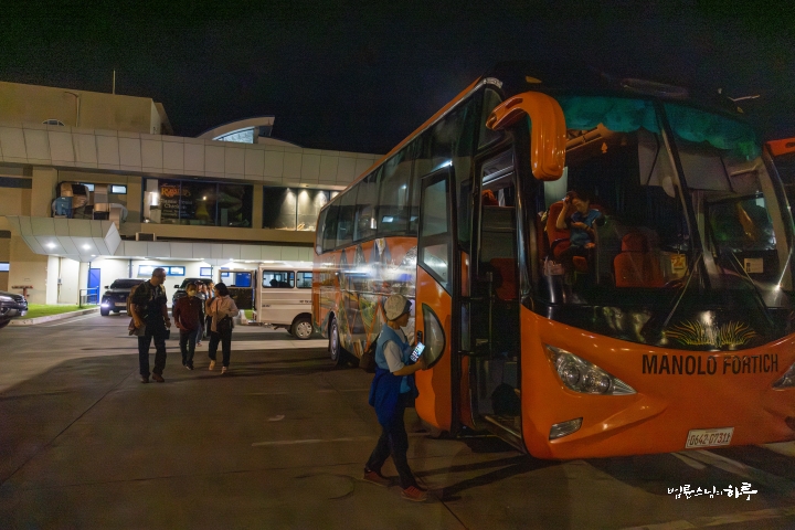 “다들 먼 길 오시느라 수고가 많으셨습니다. 지금부터는 카가얀데오로 공항을 출발하여 4시간 동안 버스로 이동하겠습니다. 아마 밤 11시가 다 되어 숙소에 도착할 것 같습니다. 도시락을 준비했으니 맛있게 드시고 편히 쉬십시오.”