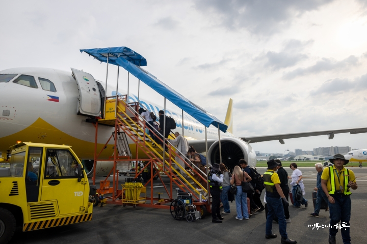 원래는 오후 3시 45분에 출발하는 국내선 비행기였지만 갑자기 비행기가 연발되었습니다. 탑승은 제시간에 했지만 활주로에서 1시간 15분을 기다리다가 오후 5시가 되어 마닐라 공항을 출발했습니다.