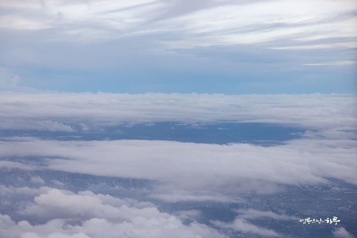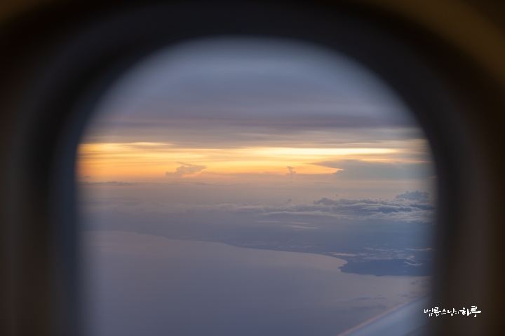 비행기가 이륙한 지 1시간이 지나자 비행기 창밖으로 저 멀리 민다나오섬이 보였습니다.