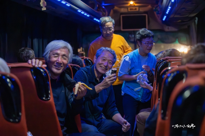 짐을 싣고 버스에 오르자, 필리핀 JTS 활동가들이 방문단에게 김밥과 바나나를 건넸습니다. 저가 비행기를 타고 오느라 모두 허기진 상태여서인지, 김밥과 바나나가 유난히 더 맛있게 느껴졌습니다.