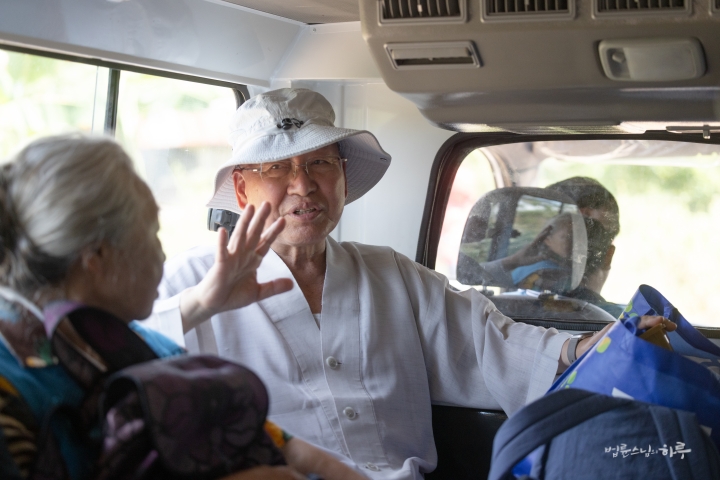 버스가 출발하자 향훈 법사님이 오늘 준공식을 하는 데겝뎁 학교에 대해 소개했습니다.
