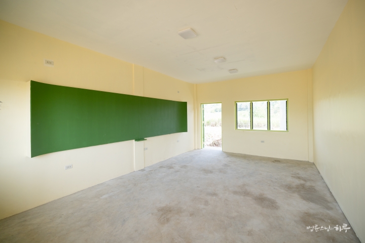 스님은 학교 전체를 한 바퀴 둘러보았습니다. 교실은 정규 교실 4칸 중 3칸을 2개로 분할하여 총 7개의 교실이 만들어졌습니다. 크고 넓은 교실이 새로 지어져서 모두가 기뻐하고 있었습니다. 교실 안으로 들어가 보려고 했으나 페인트가 아직 마르지 않아 접근할 수가 없었습니다. 준공식을 하기 위해 어제까지 많은 사람들이 애를 썼다고 합니다.